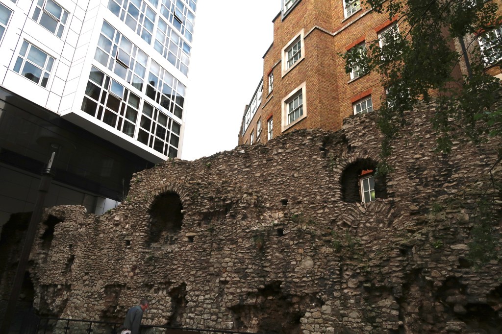 London wall first built by the Romans was later increased in height during the medieval time. Only a fraction of the London Wall remains.